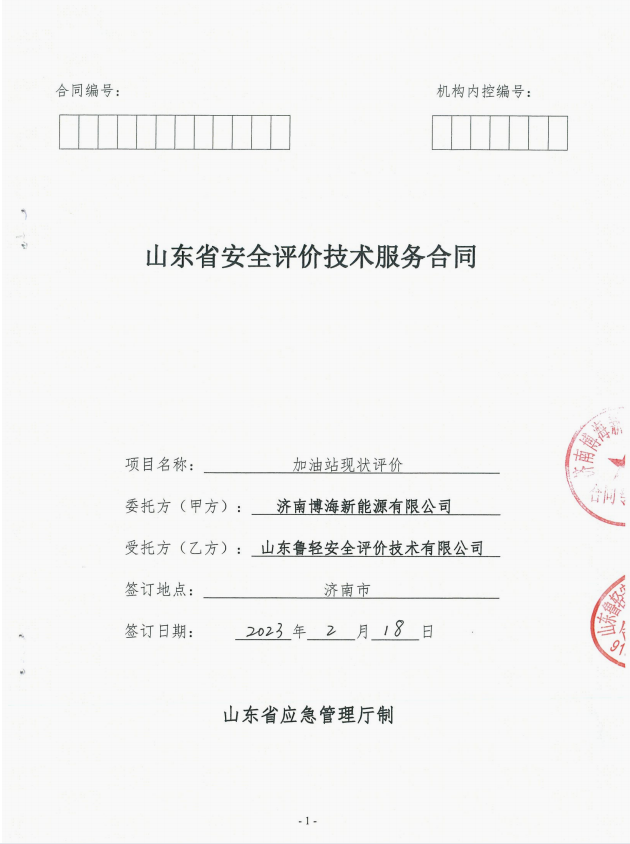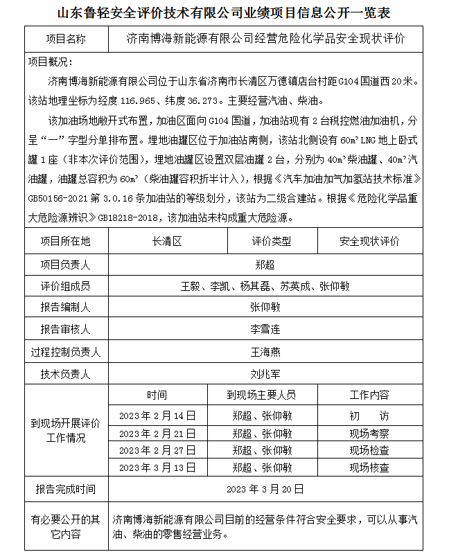 濟(jì)南博海新能源有限公司經(jīng)營(yíng)危險(xiǎn)化學(xué)品安全現(xiàn)狀評(píng)價(jià)
