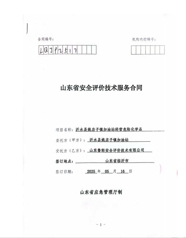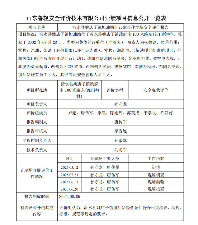 沂水縣姚店子鎮加油站經營危險化學品安全評價報告