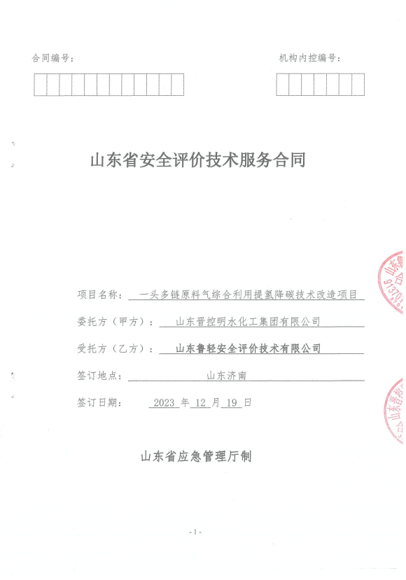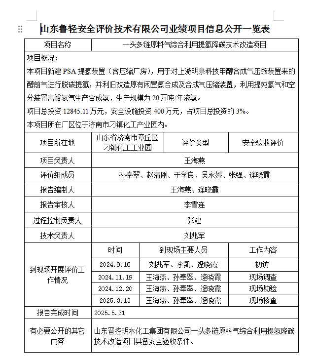 一頭多鏈原料氣綜合利用提氫降碳技術改造項目安全驗收評價報告