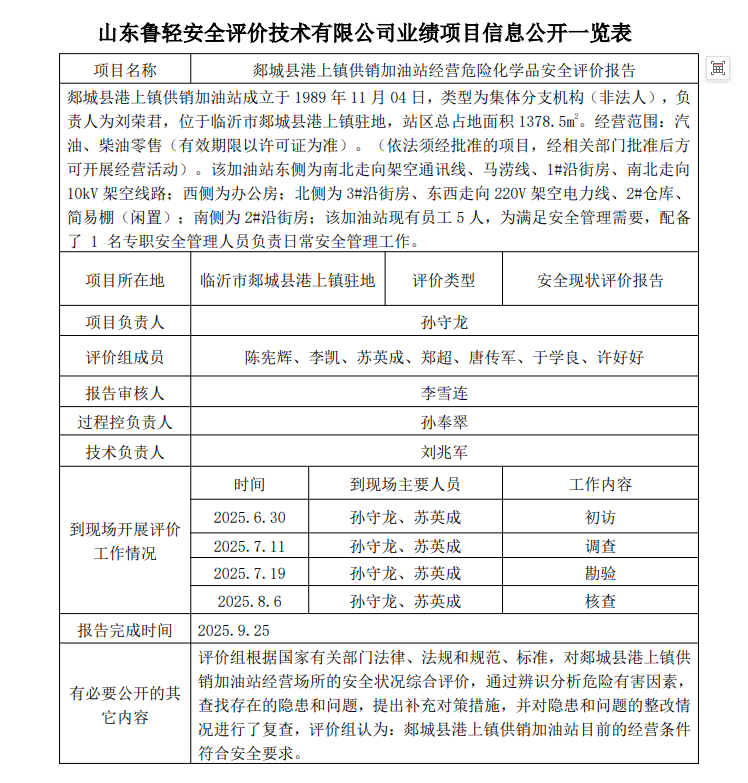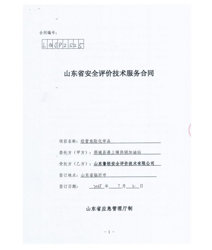 郯城縣港上鎮(zhèn)供銷加油站經營危險化學品安全評價報告